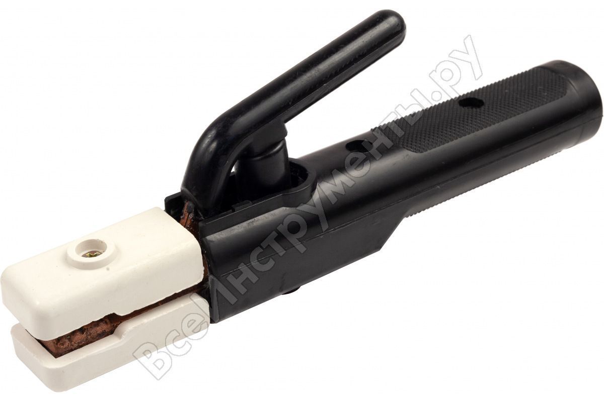 Держатель электродов Сибртех 91455 совместим со сварочными аппаратами с силой тока до 500 A. Используется для удержания электрода в нужном положении и подведения к нему тока в процессе сварочных работ. Работает с электродами диаметром до 10 мм.
