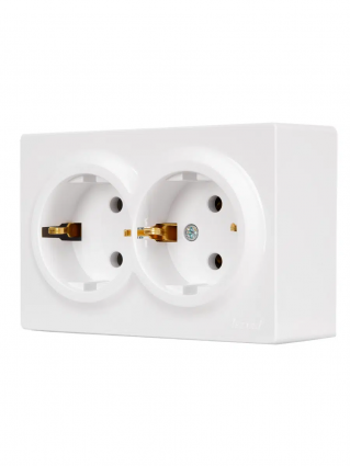 LETO Розетка двойная с/з откр.уст. ПБТ белый