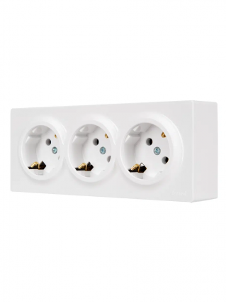 LETO Розетка тройная с/з откр.уст. ПБТ белый