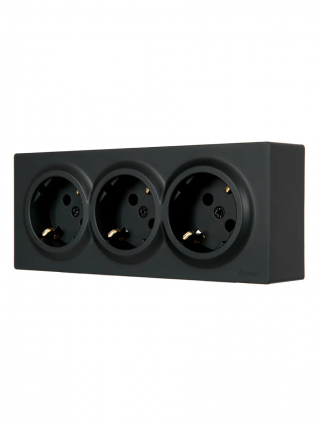 LETO Розетка тройная с/з откр.уст. ПБТ чёрный бархат