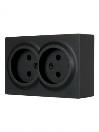 LETO Розетка двойная б/з откр.уст. ПБТ чёрный бархат