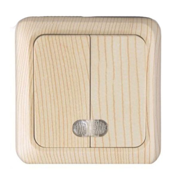 Выключатель 2-клавишный с подсветкой "Олимп" о/у, 10А, 220В сосна