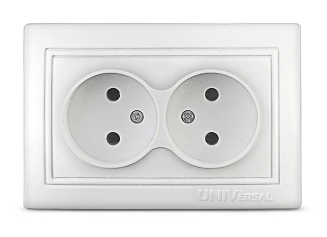 Двойная розетка без заземления, белая UNIVersal Севиль С0102 - электротехническое изделие с универсальным, лаконичным дизайном и классическим цветом корпуса. Идеально подходит для оформления жилых и офисных помещений.