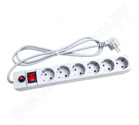 Сетевой фильтр ПВС 3*0,75 6гн. выкл. с индикацией, с/з, з/ш, 3м, белый "UNIVersal"