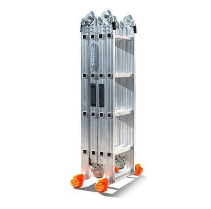 Универсальная лестница Эйфель Классик 4х4 - лестница профессионального назначения для выполнения работ на высоте. Отличается надежностью и долговечностью. Стальные стопорные шарниры позволяют устанавливать лестницу в нужное положение. Лестница имеет складную конструкцию и небольшой вес, что способствует удобству транспортировки. Широкие траверсы с противоскользящими башмаками обеспечивают устойчивость приспособления.