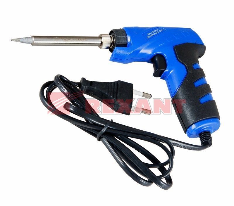 Импульсный паяльник с керамическим нагревателем Профи 220В, 25-130Вт REXANT ZD-723N 12-0162-1 используется в домашних условиях для распайки кабелей и монтажных/демонтажных работ радиоэлементов. Устройство может использоваться в двух режимах 25 и 130 Вт. Повышение мощности и ускоренный нагрев достигаются путем нажатия и удержания курка. Пистолетная форма ручки удобна в обхвате и не проскальзывает благодаря прорезиненным вставкам. Паяльник отличается надежностью, долговечностью и низким уровнем электропотребления.Характеристики