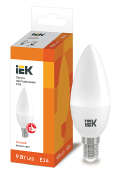 Лампа LED C35 свеча 9Вт 230В 3000К E14 IEK