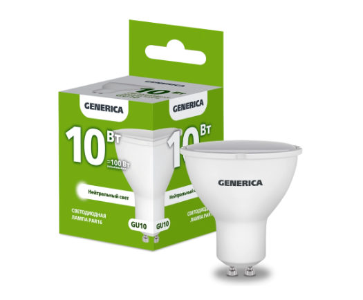 Лампа светодиодная PAR16 софит 10Вт 230В 4000К GU10 GENERICA