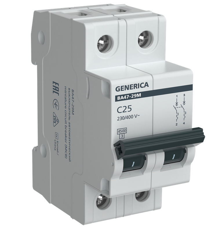 Авт.выкл. ВА47-29М 2P 25А 4,5кА C GENERICA