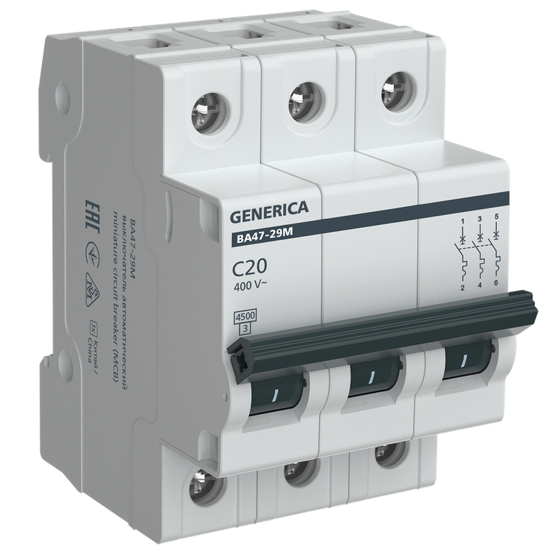 Авт.выкл. ВА47-29М 3P 20А 4,5кА C GENERICA