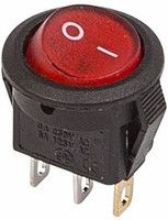 Выключатель клавишный круглый 250V 3А (3с) ON-OFF красный с подсветкой Micro предназначен для коммутации электрических цепей переменного тока напряжением до 250В. Клавишные (Рокерные) выключатели применяются в качестве комплектующих изделий различного электрооборудования (в сетевых фильтрах и удлинителях, аудио-оборудовании, блоках питания, электроустановках на различных производствах и многих других местах). Такой клавишный переключатель имеет два положения. Принцип действия основан на перемещении клавиши в одну из позиций. Для переключения в нужное положение требуется приложить некоторые усилия на клавишу. Монтаж осуществляется без применения винтов на плоских панелях толщиной от 0.8мм до 3мм. Подключение контактов осуществляется плоской клеммой либо с помощью пайки.