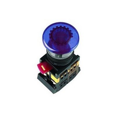 Кнопка AЕА-22 Грибок синий d22мм неон 240В 1з+1р ИЭК
