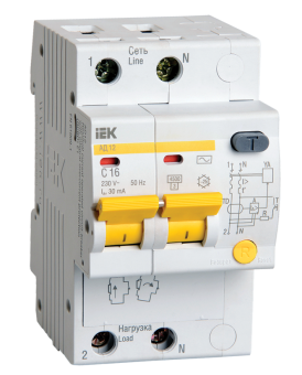 Диф автомат АД12 ИЭК 16А 2Р 30мА ИЭК