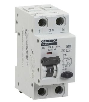 Авт.выкл.диф.тока АВДТ-32, 25А, 2Р, С, 30мА, GENERICA