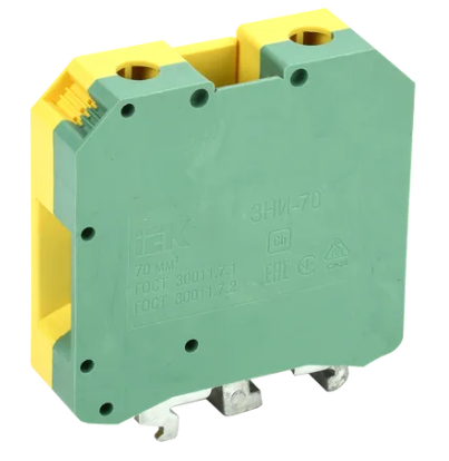 Служат для безопасного и компактного подключения фазных, нулевых и защитных (земля) проводников различного сечения. Устанавливаются на DIN-рейку. Комплектуются маркером для нанесения номера (кроме ЗНИ-2,5 и ЗНИ-95). Также поставляются боковые заглушки для клеммных зажимов серии ЗНИ. Цвет: синий, серый, зеленый. Оконечные зажимы могут закрываться пластиковыми заглушками соответствующего размера и цвета. Выполнены из цветного огнестойкого полиамида: желто-зеленого (земля), синего (ноль), серого (фаза) цвета.