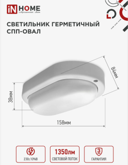 Светильник LED СПП ИД-1565-ОВАЛ 15Вт 6500К 1350Лм с инфракрасным датчиком IP65 160х88мм
