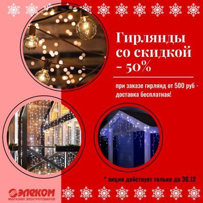 ТД «Элеком» проводит Новогодние скидки на ГИРЛЯНДЫ до -50%!!! ГИРЛЯНДЫ от 110,5 руб!